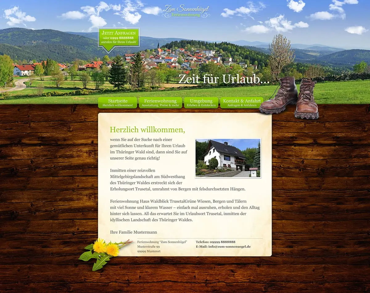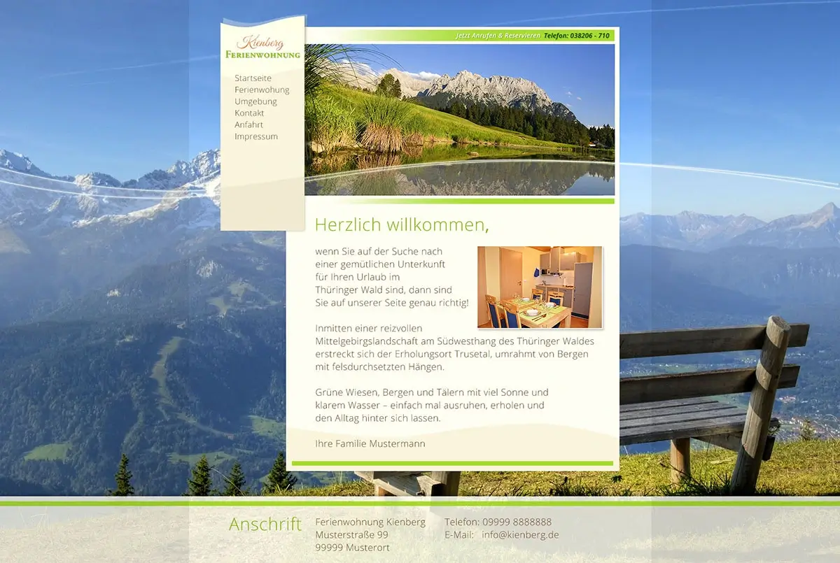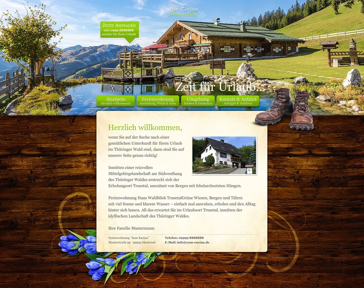 Diese Vorlage ist ideal für Vermietungsobjekte mit rustikalem Ambiente bzw. Einrichtung. Sie ist für alle Regionen anwendbar.